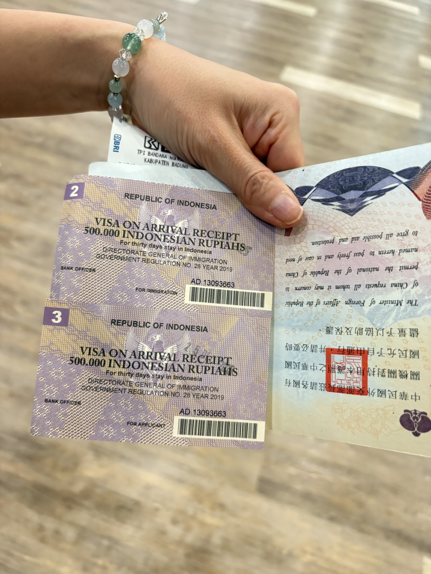 - 簽證費用 500,000 印尼盾 (現金或刷卡)
