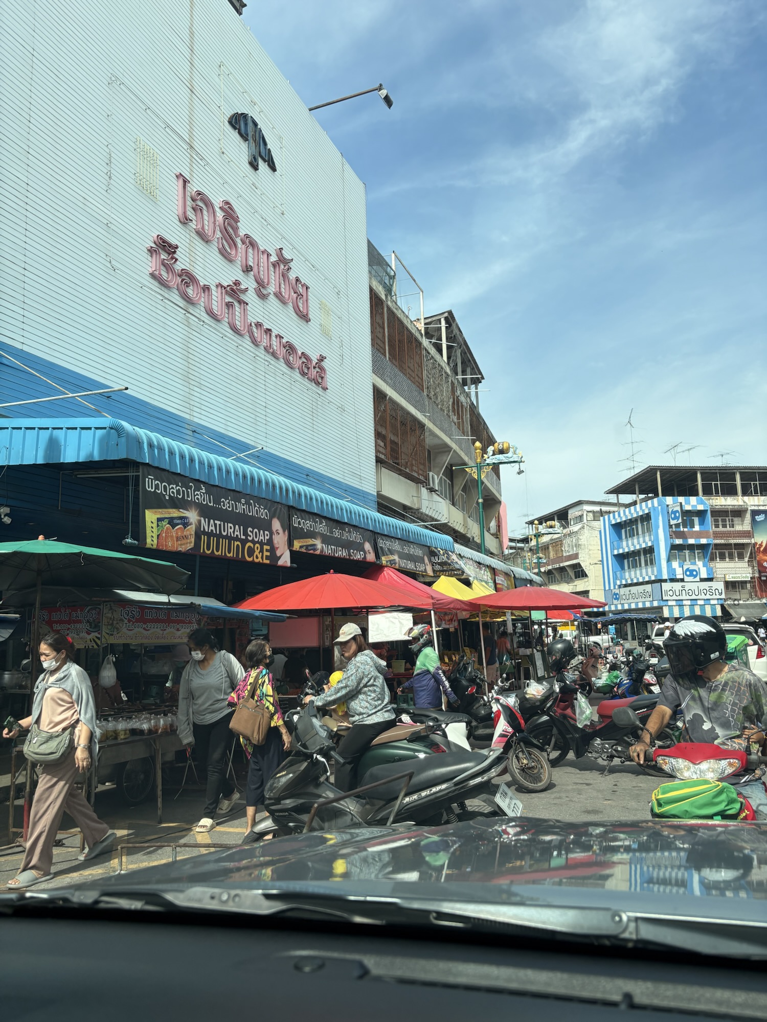 原本要停在標題所示的停車場,但是突然看到路邊有停車位所幸停下來了,因為離鐵道市場更近,但是要特別注意上圖標示「Parking area」整條街晚上會是個夜市,所以四點多陸陸續續會有攤販來擺攤,所以記得要移車不然會擋住他們擺攤喔!然後愛吃榴槤的朋友看到這裡放個小福利,就是在上圖我說的街道上有一攤的榴槤非常新鮮又好吃(沒有別攤只有這一攤),價格是曼谷市區的半價,超級便宜的!有來美攻市場的朋友一定要來這一攤買榴槤,把每顆榴槤用塑膠紙包裝起來就只有這家了,連當地居民一直光顧的店,所以路過別錯過!