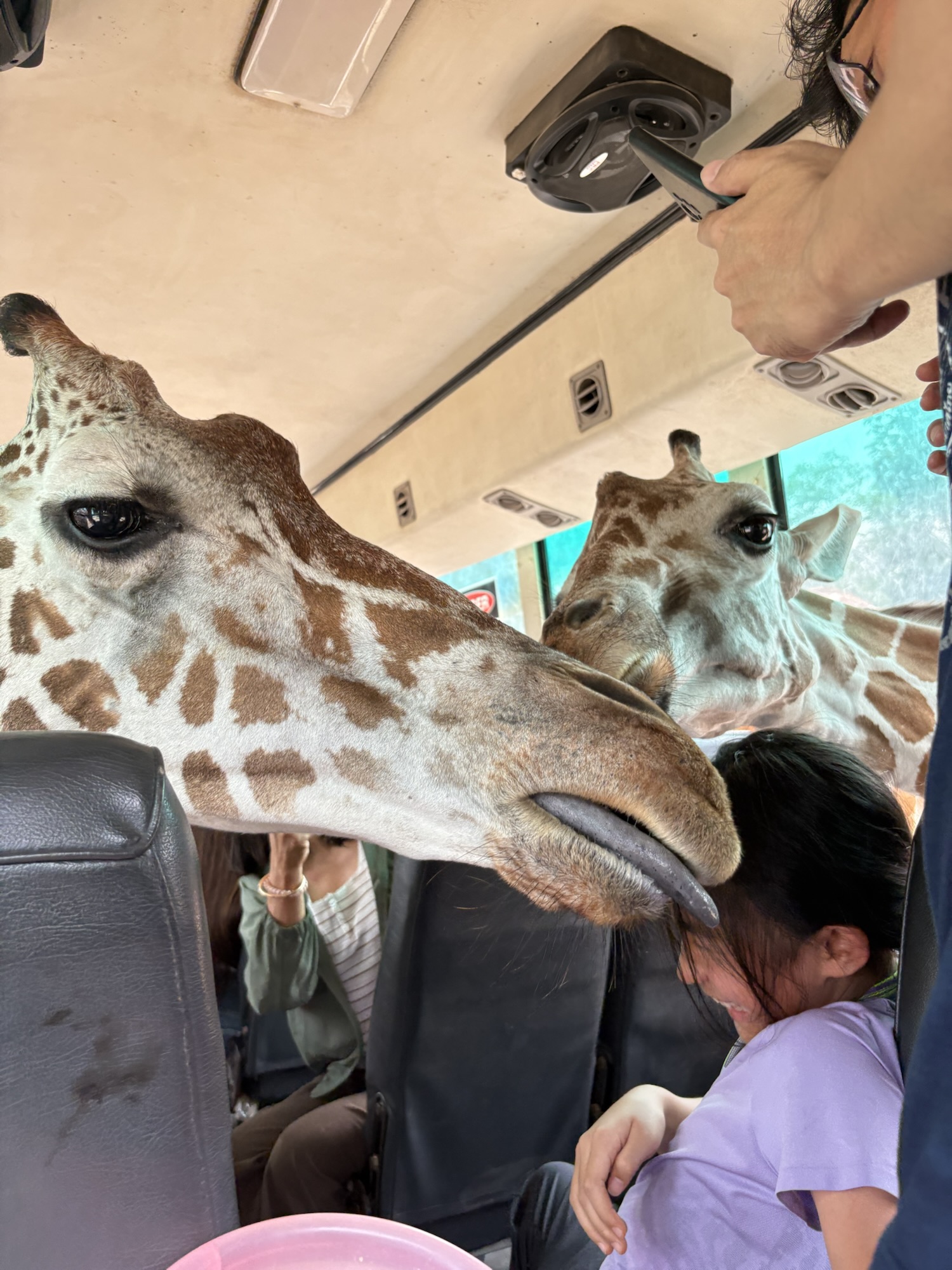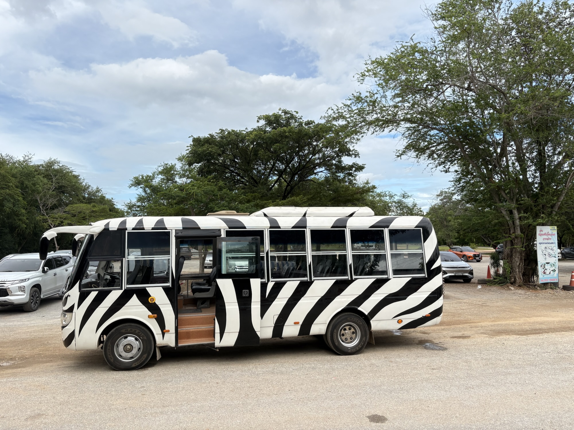 1. 長頸鹿吉普車拍照:是園區最熱門的活動所以需要預約,售票處只能付現金:大人1000泰銖、120公分以下500泰銖,每個團體只有30分鐘可以盡情地拍照,現場預約不一定會是你喜歡的時間點,所以路途遙遠的各位建議可先透過Trip.com連結買票預約拍照時間,預約的時間就可以搭乘開放式吉普車前往長頸鹿園區,而園區服務人員會準備長頸鹿的最愛-紅胡蘿蔔引誘牠們往吉普車移動,司機大哥會一直丟食物往車頭頂丟,長頸鹿就會爭先恐後地搶食,這時候的我們就可以盡情地與牠拍照喔!